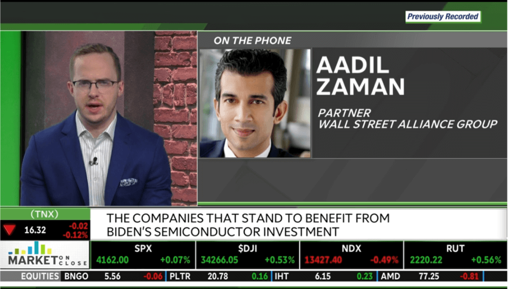 Aadil Zaman, Partner at Wall Street Alliance Group, appeared on TD Ameritrade Network “Market on Close” show with Oliver Renick to discuss dominant investment themes related to shortages, inflation and opportunities in the semiconductor sector.